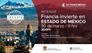 Dans le cadre du mois de la Francophonie, la Chambre de Commerce et de l’Industrie Franco-Mexicaine (CCI France) en collaboration avec CADEP, organise jeudi 30 mars à 11 heures (heure CDMX), le webinaire “La France investit dans el Estado de México”